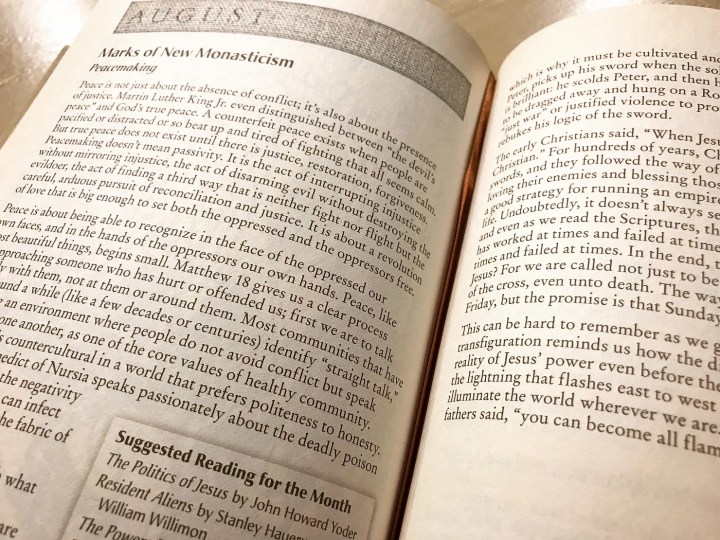 “Peacemaking begins with what we can change – ourselves. But it doesn’t end there. We are to be peacemakers in a world riddled with violence. That means interrupting violence with imagination, on our streets and in the world. This peace that is ‘not like any way the empire brings peace’ is rooted in the nonviolence of the cross, where we see a Savior who loves his enemies so much he died for them. Peace is often not our instinct, which is why it must be cultivated and grown in us. Even Jesus’ key disciple, Peter, picks up his sword when the soldiers approach Jesus. Jesus’ response is brilliant: he scolds Peter, and then he heals the wounded persecutor, only to be dragged away and hung on a Roman cross. If ever there were a case for ‘just war’ or justified violence to protect the innocent, Peter had it. Yet Jesus rebukes his logic of the sword.