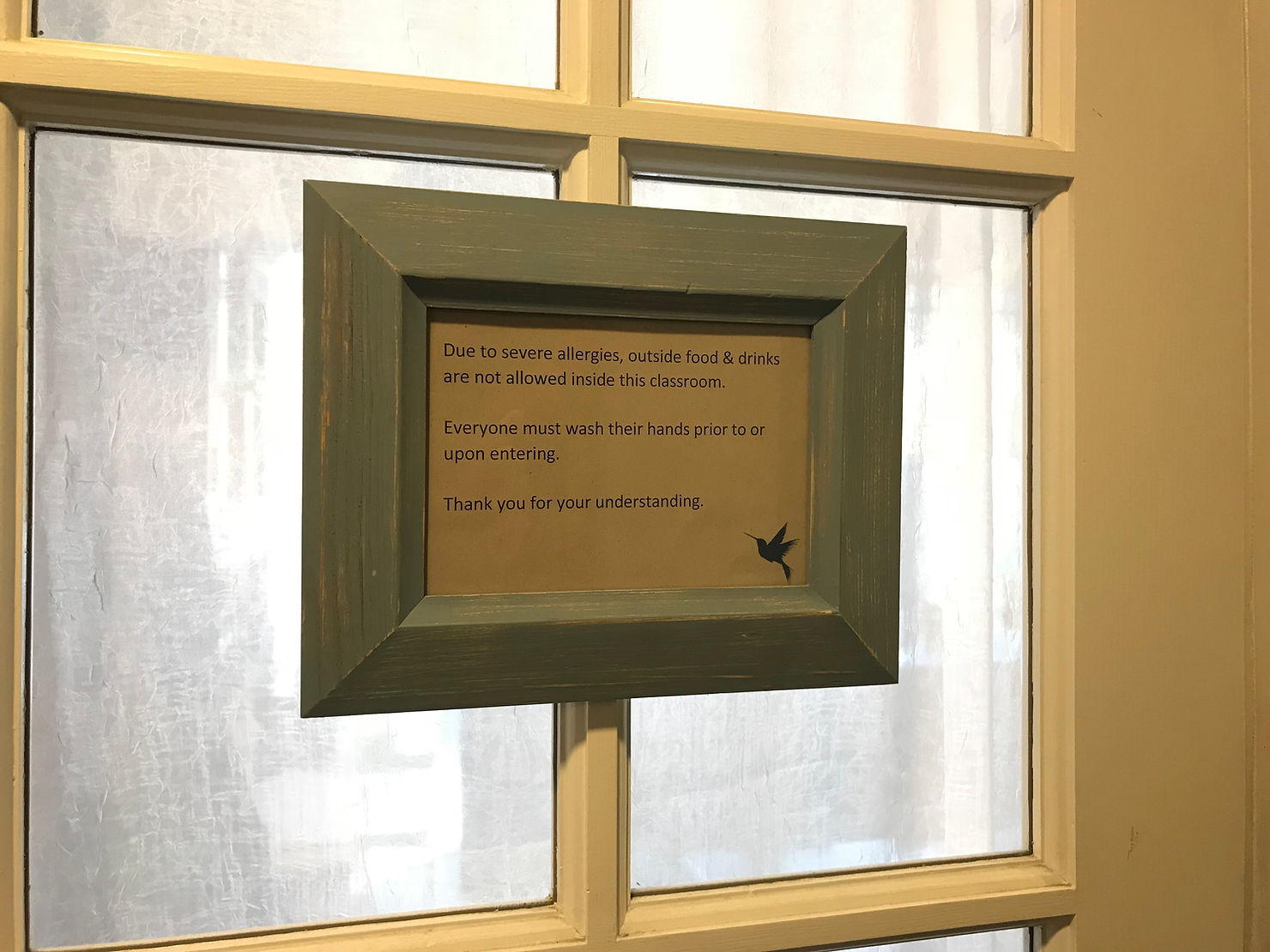 I would continue to be moved by the kindness of my son’s teachers and the staff as the school year began. The snacks served in class were all screened and safe for him, so he was able to eat with his classmates at the same table. Even the little touches, like this sign they created and the hand-wiping station outside the classroom, had such an impact, not just on his safety, but on our hearts.